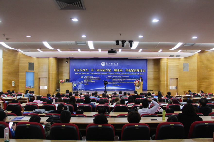 广外新闻网讯 12月7日至9日,“东方与西方:第三届国际作家、翻译家、评论家高峰论坛”在我校北校区图书馆负一楼多功能报告厅举行。本届论坛有来自中国、美国、加拿大、法国等10位专家分别作主旨发言,并以“翻译、文化与形象”、“中国文化对外译介与传播”及“跨学科翻译研究”为主题设三个分会场,旨在通过东西方对话,交流文学写作、翻译与译介、汉学研究、海外作家研究等议题,寻求作家、翻译家、评论家之间的有效互通与连接,促进中国文化“走出去”。我校副校长阳爱民出席会议并致辞。