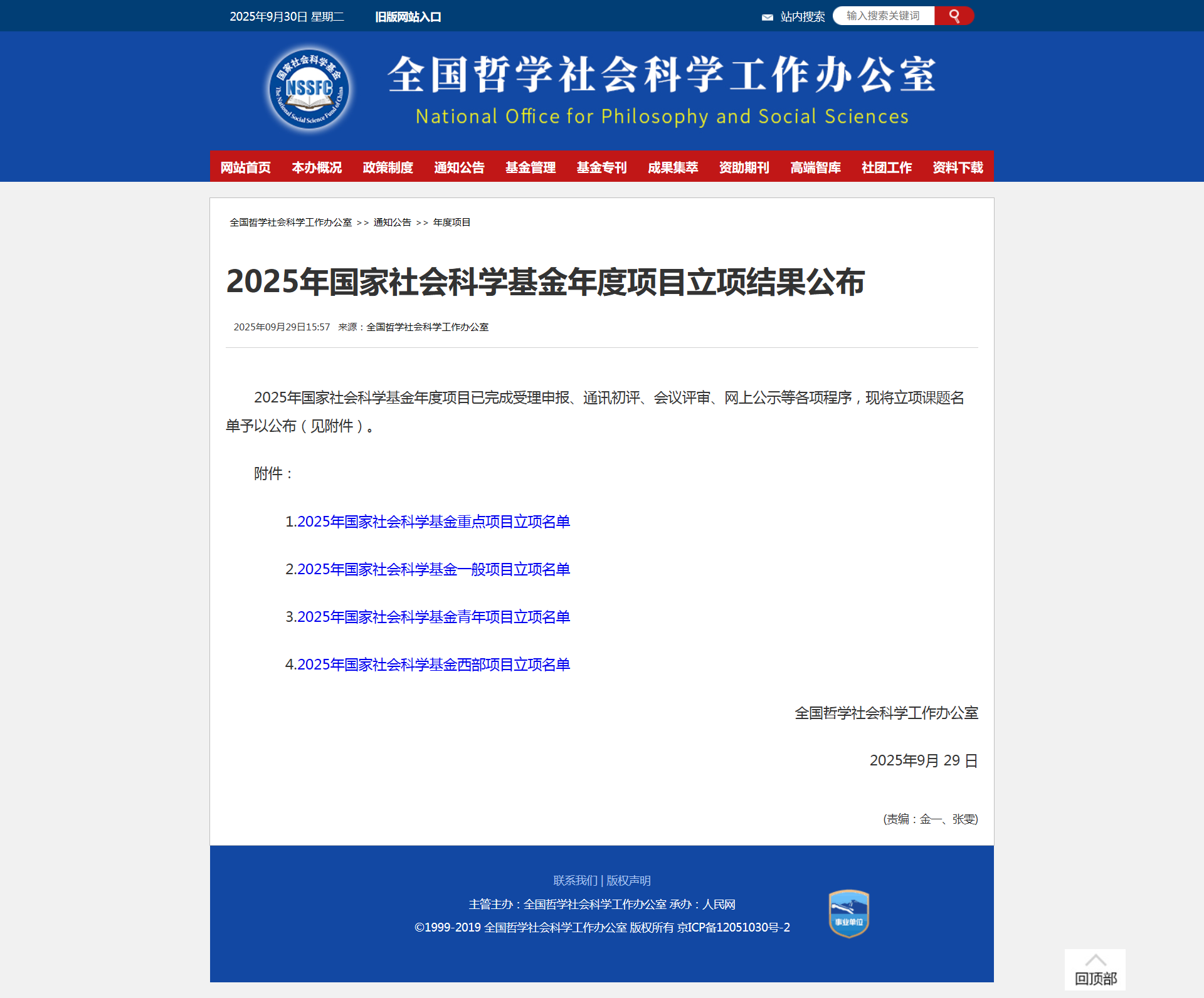近日,2025年度国家社会科学基金年度项目及2025年度教育部人文社科年度项目相继发布立项通知和公示通知。我中心主任赵军峰教授申报的“法律文学外译建构中国传统法治形象研究”项目成功获批国家社科基金一般项目立项,中心研究员任亚峰教授申报的“基于深度学习的跨语言情感迁移与翻译一致性研究”项目和博士后李翔副教授申报的“多智能体协同法律翻译质量评估体系建构与应用研究”项目分别获教育部规划基金项目和青年基金项目拟立项。此外,我中心已出站博士后校友及高翻学院多位博士毕业生校友及亦获2025年国家社科基金项目立项或教育部项目拟立项。