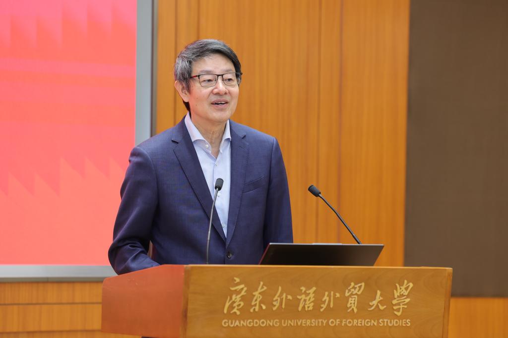 石佑启教授代表广东外语外贸大学对前来参加本次活动的专家学者表示热烈欢迎。石佑启指出,梁宗岱先生是我国著名诗人、学者、翻译家、教育家,精通中、法、英、德等多国语言,为中外诗歌互译、文化互通作出过巨大贡献,他包容的跨文化视野和熔铸古今、会通中西的治学理念,为广东外语外贸大学留下了宝贵的精神文化财富。梁宗岱翻译奖的设立旨在启示学界传承大家的学术风范,明晰翻译学科的职责和使命、发展的方向和路径,在新时代新征程上为服务国家重大战略,推进中国式现代化建设作出更多贡献。