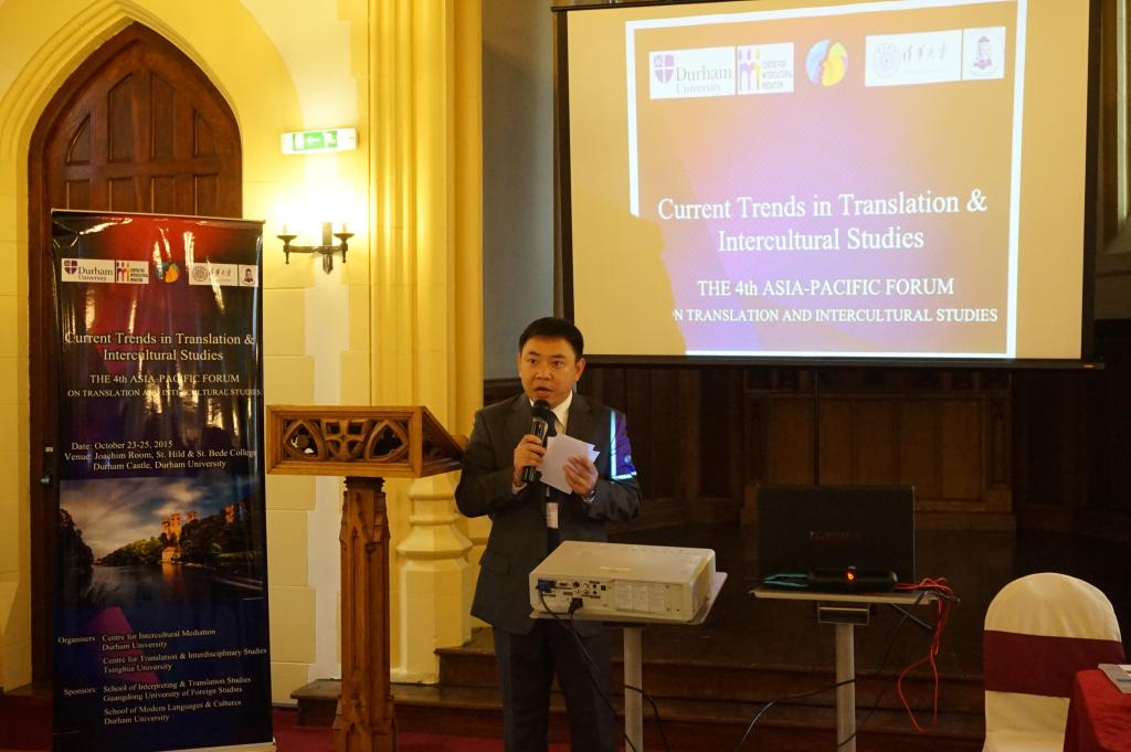 2015年10月23日至25日,第四届亚太翻译与跨文化研究论坛在英国杜伦大学举行,我校翻译学研究中心主任莫爱屏教授,高级翻译学院副院长詹成教授和高级翻译学院博士生李洋应邀参加研讨会并发言。