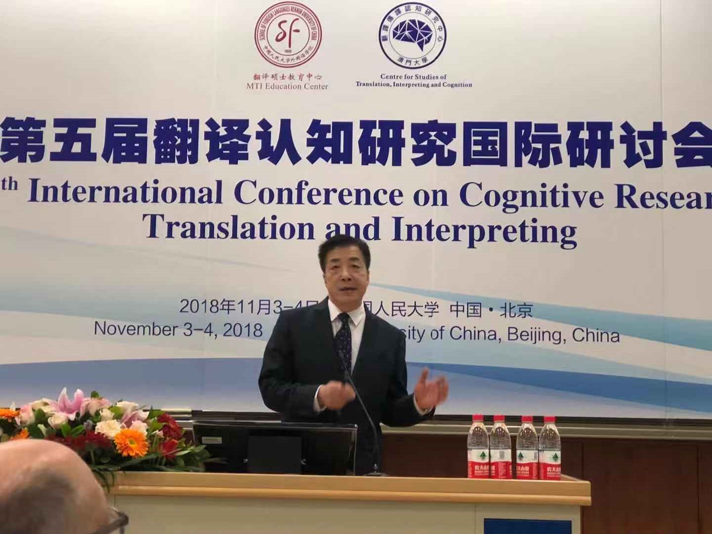 11月3日至4日,“第五届翻译认知研究国际研讨会”在中国人民大学隆重举行。本届研讨会由中国人民大学外国语学院MTI教育中心和澳门大学翻译传译认知研究中心主办,来自哥本哈根商学院、巴黎第三大学、都柏林城市大学、肯特大学、维也纳大学、澳门大学、香港理工大学、中国人民大学、北京外国语大学、广东外语外贸大学、上海外国语大学、复旦大学、南开大学、上海交通大学、北京师范大学、西南大学等80余所国内外知名院校近160余位认知翻译领域专家、学者和代表与会。我校翻译学研究中心专职研究员、“云山杰出学者”、国家二级教授、博士生导师卢植教授应邀率博士生团队参加了此次会议,并在会上做了40分钟的主旨发言。