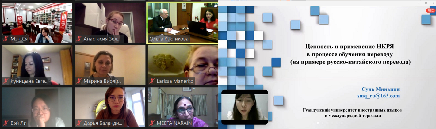 2020年11月18日,由俄罗斯教育学科院和莫斯科大学高级翻译学院共同主办的《数字时代的翻译教学法》(Дидактика перевода в цифровую эпоху)国际研讨会通过远程连线在云端会议室成功举行。俄罗斯教育科学院院长Ю. П.津琴科(Юрий Петрович Зинченко)院士致欢迎辞,莫斯科大学高翻学院院长,广外翻译学研究中心兼职研究员Н. К.加尔博夫斯基(Николай Константинович Гарбовский)教授致开幕辞,并担任主持。加尔博夫斯基指出,寻求线上工具和有效方法之间的平衡点,建立并维持与受众的联系,克服数字环境的局限性,是当今翻译教学面临的主要挑战。