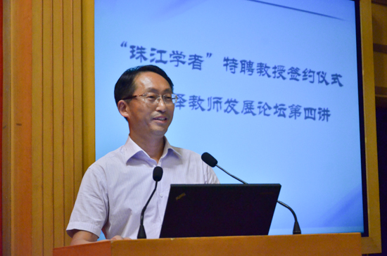 10月21日,我校“珠江学者”特聘教授签约仪式在北校区国际会议厅举行。副校长阳爱民、黑龙江大学教授黄忠廉、翻译学研究中心主任莫爱屏、教育学院院长董金伟及部分师生代表参加了聘任仪式。仪式由人事处副处长兼高层次人才管理办公室主任谢文新主持。
