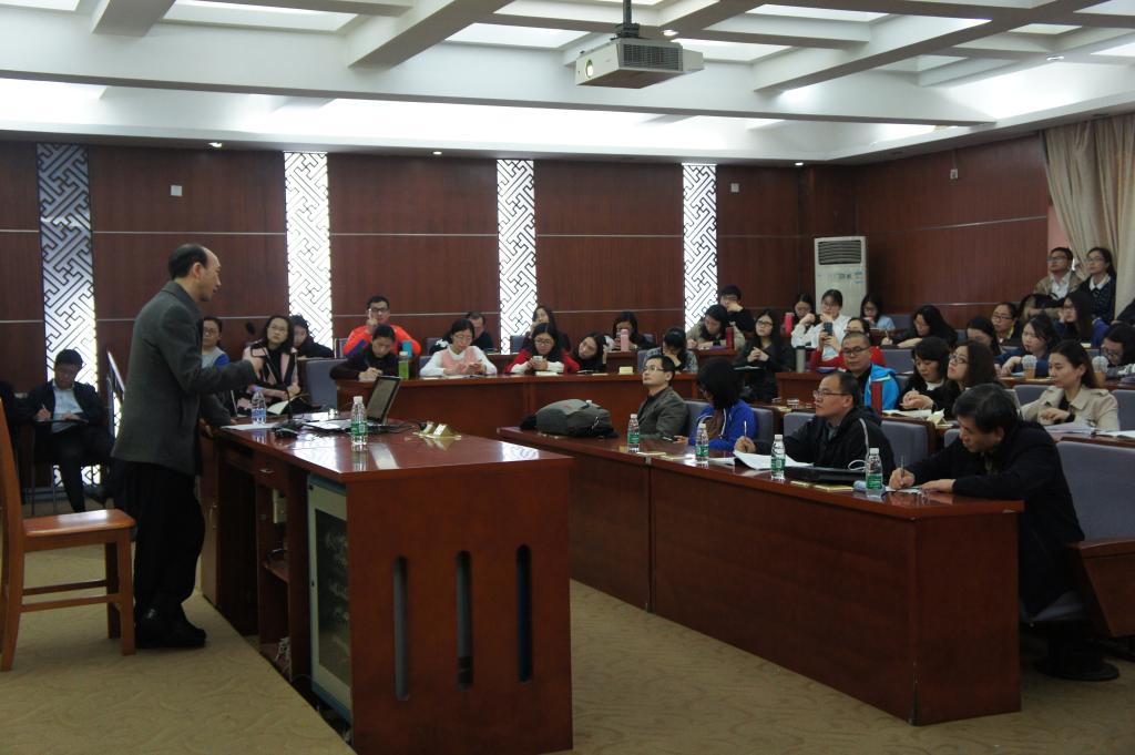2017年3月16日,由人事处教师发展中心主办,翻译学研究中心承办的翻译教师发展论坛(第11讲)在六教B103教室举办。本次论坛邀请到中南大学外国语学院博士生导师,《外语与翻译》执行主编,湖南省翻译研究基地主任范武邱教授介绍了高等级课题申报以及论文选题。翻译学研究中心莫爱屏教授、曾利沙教授及全校几十名师生一起聆听报告。