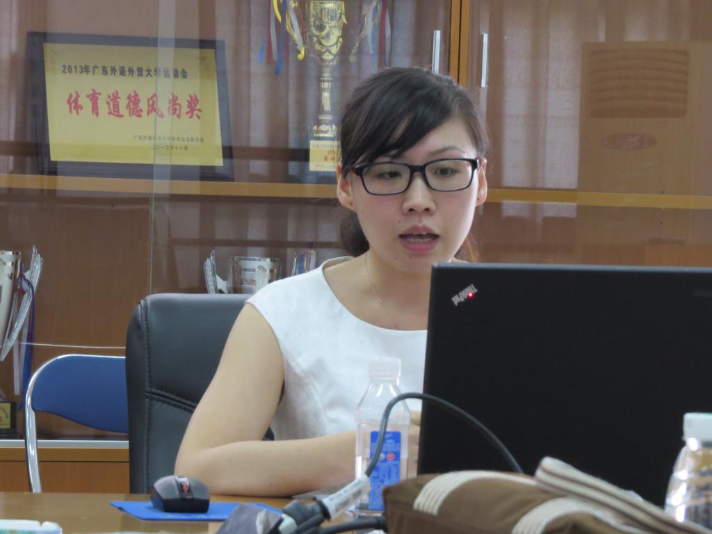 6月13日下午,本学期第四期翻译学博士生论坛在六教A421教室举行。本次论坛主讲人为高级翻译学院教师唐芳,主题为“职业译员与学生译员汉英交替传译中的显化特征对比研究”。来自高翻学院的部分老师以及近二十名硕士生、博士生参加了本次论坛。