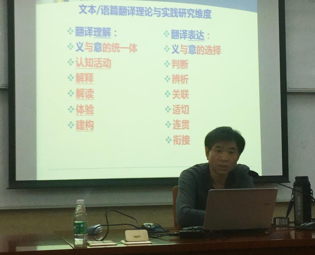 接着,曾教授区分了解释和解读这两个概念。他认为,解释依赖于知识,解读取决于智慧。智慧要以知识为前提。要达成解释的客观可证性,首先要建立一个宏观框架。宏观框架主要包括主题、话题和主题倾向等。译者若不能首先从整体上把握文本的结构内容,那么对微观层面的词句语义的识解和翻译表达会出现误读和误译的现象。