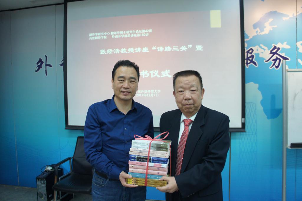 讲座开始前,著作等身的张教授向广外翻译学研究中心捐赠了由自己翻译的国外文学经典系列译著。