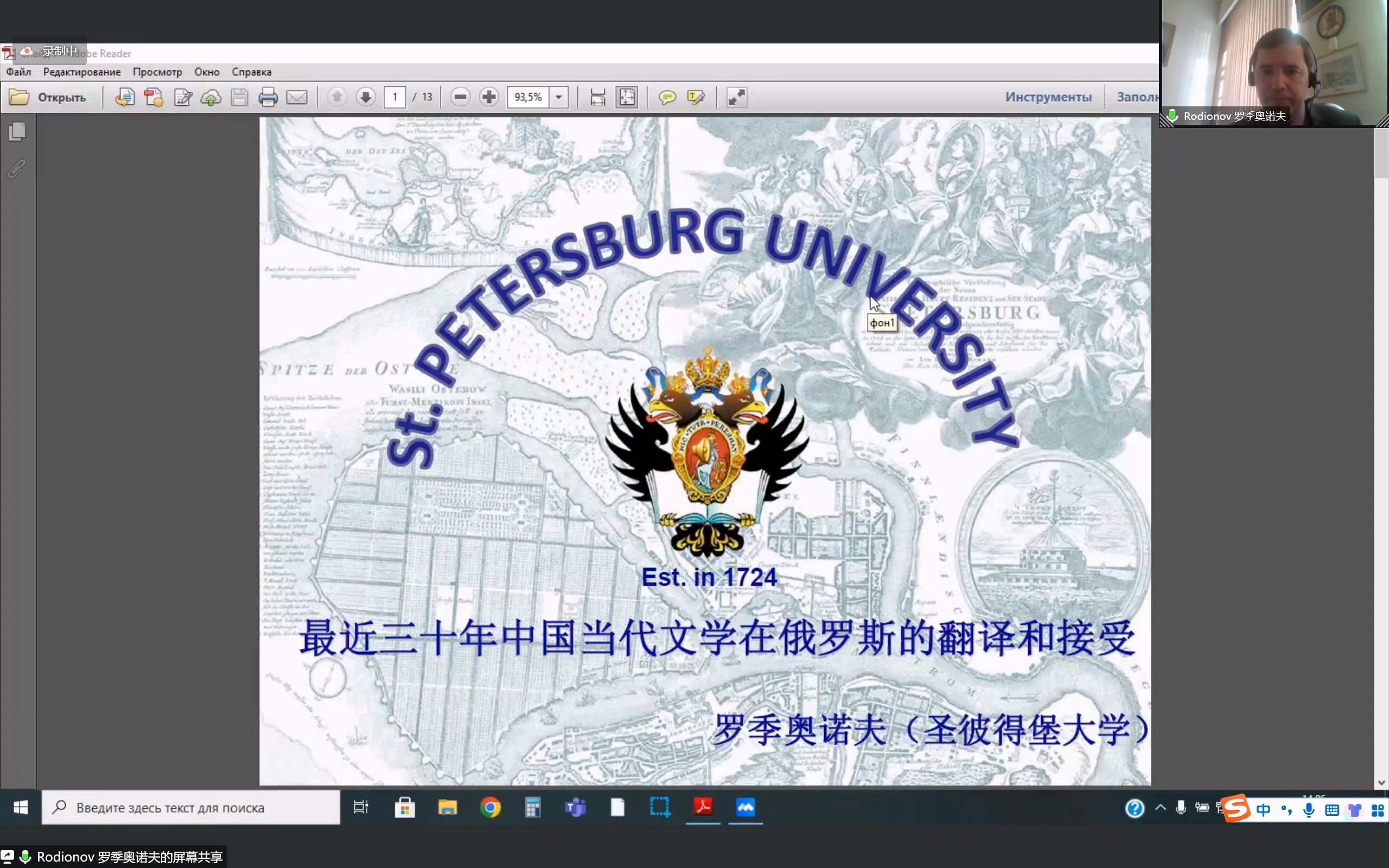 2022年10月24日19:00,广东外语外贸大学海外名师讲学项目系列讲座(二)以线上腾讯会议的方式举行。本次讲座由俄罗斯圣彼得堡国立大学东方系常务副主任罗季奥诺夫(Aleksei Rodionov)主讲,广东外语外贸大学研究中心专职研究员黄忠廉教授主持。国内外众多师生参加了本次讲座。