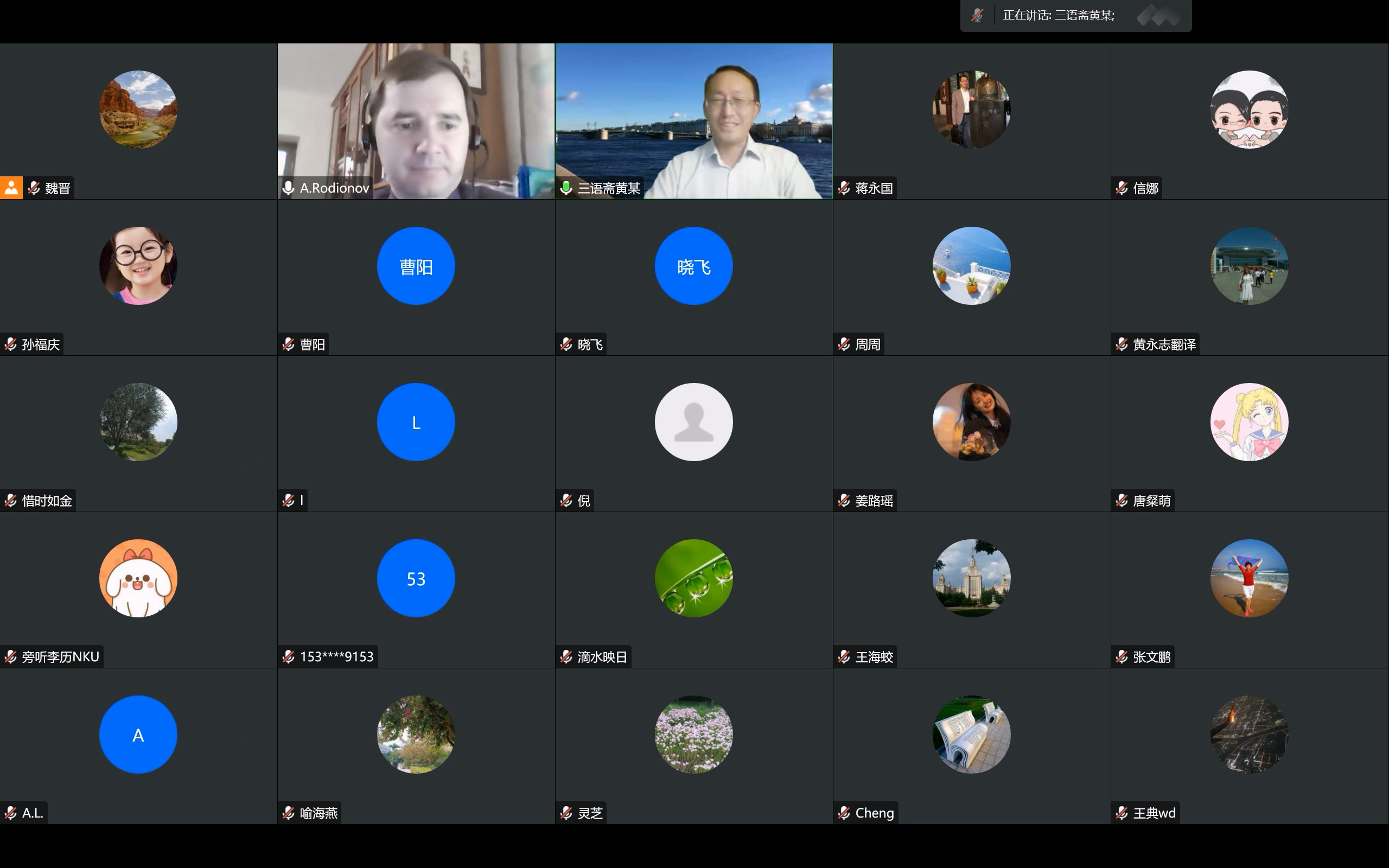 2022年10月28日19:00,广东外语外贸大学海外名师讲学项目系列讲座(三)在云端如期开讲。应我校翻译学研究中心邀请,知名汉学家、翻译家、俄罗斯圣彼得堡国立大学副教授、东方系常务副主任罗季奥诺夫(Aleksei Rodionov)做了题为“读俄罗斯文学看中国”的精彩讲座,讲座由黄忠廉教授主持。本次讲座参与人数较多,场面热烈,异彩纷呈。